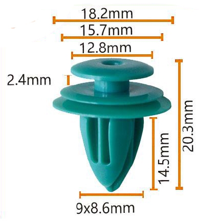 Кожны крапеж Qeepei мае дакладныя памеры, якія былі строга правераны, каб забяспечыць ідэальную форму з вашым аўтамабілем GM. Даўжыня 20,3 мм, шырыня 9,6 мм, а дыяметр адтуліны 8,6 мм. Зялёны пластыкавы матэрыял з высокай трываласцю выбіраецца для яго трываласці, устойлівасці да зносу і здольнасці вытрымліваць экстрэмальныя тэмпературы і ўмовы.