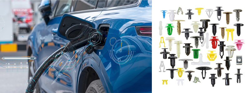 Цеплавая ўстойлівасць: аўтамабільныя заціскі ў новых энергетычных транспартных сродках часта выкарыстоўваюцца для забеспячэння акумулятарных батарэй, інтэр'ераў цела або электрычнага абсталявання, патрабуючы, каб іх матэрыялы былі стабільнымі пры высокіх тэмпературах. Напрыклад, пластыкавыя заціскі могуць пашырацца або змякчацца пры высокіх тэмпературах, што прывядзе да адмовы злучэння, таму выкарыстанне інжынернай пластмасы або металічных матэрыялаў з больш моцнай цеплавой устойлівасцю стала непазбежнай тэндэнцыяй.