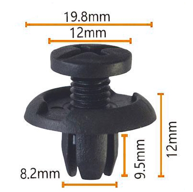 Вымяраючы дакладна 19,8 мм у даўжыню, шырынёй 12 мм, вышынёй 9,5 мм і таўшчынёй 8,2 мм, гэтая зашпілька адпавядае галіному стандартам, забяспечваючы бесперашкоднае ўкладванне з рознымі аўтамабільнымі часткамі. Зроблены з высокакласнага чорнага пластыка, ён можа пахваліцца лёгкай канструкцыяй, каразійнай устойлівасцю і зносам, павышаючы яго даўгалецце.
